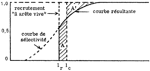 FIGURE 7.2. - Combinaison d'une courbe de sélectivité et du recrutement. Recrutement sur une série de longueurs.