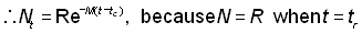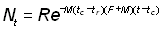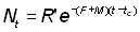 Pour t > tc, lorsque interviennent mortalité par pêche et mortalité naturelle: