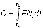 Le nombre d'animaux péchés entre les temps t et t + dt sera F. Ntdt, de sorte que l'on obtiendra le nombre total de captures, C, en divisant le temps total écoulé entre tc (âge à la première capture) et tL (âge maximal atteint) en brefs intervalles, et en additionnant le nombre péché dans chacun d'eux.