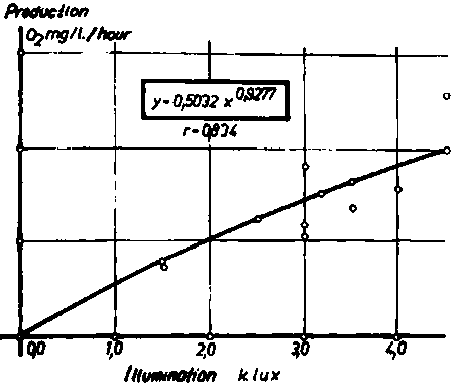 From the late afternoon hours photosynthesis is rapidly decreasing and is stopped after dark. The dissolved oxygen content of the water is also decreasing during this period, the minimum value occurring during the summer months.