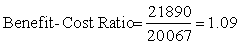 Adding a nursery pond to production ponds costs about US$ 2 000 with a useful life of about 10 years. Money needed for construction is withdrawn from the bank savings account which is earning 5 percent interest. Adding a nursery pond will reduce the mortality rate of the stock and thus increase production by about 500 kg at a farm price of US$ 3/kg. The increase in production will also add feed cost of US$ 500/year. Estimate the economic feasibility of this change: