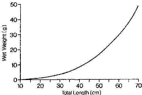 Figure 6. The length to wet weight relationship of intact primary shoots from a sheltered site in southwestern Nova Scotia.