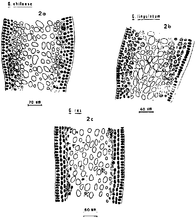 Figure 2. Transections of fronds of Gelidium chilense, G. lingulatum and G. rex.