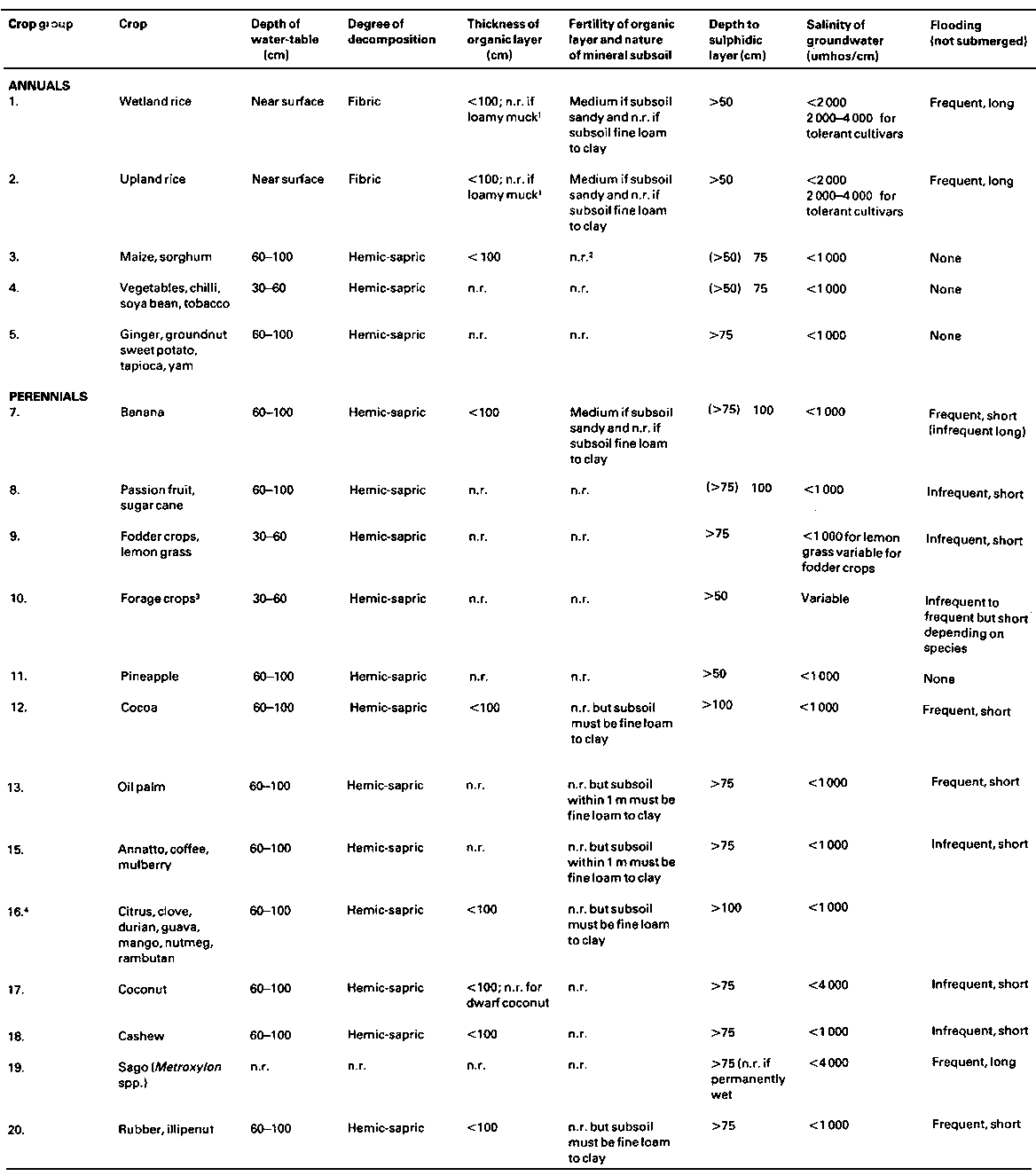 4 Frequent, but short-term flooding acceptable for clove, nutmeg and rambutan; infrequent, long lasting floods for citrus, durian, guava and mango.