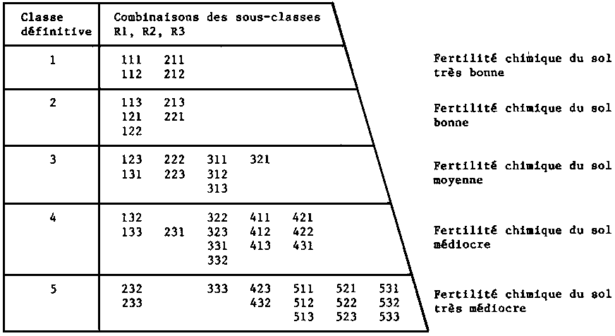 Une récapitulation des qualités des terres est donnée au tableau 7.1. Le présent chapitre étudie les qualités dans l'ordre, d'abord celles qui servent à estimer les besoins des cultures (NOS 1-15), puis celles qui sont principalement liées à l'aménagement des plans de culture (NOS 16-23); enfin, celles qui touchent à la conservation (NOS 24-25).
