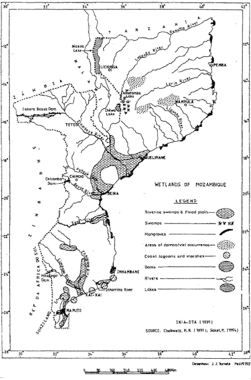 Hughes R.H., and Hughes J.S. 1992. A directory of African Wetlands. Mozambique. IUCN.