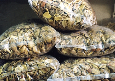 L'egusi ou m'bika ou graine de courge sont des noms commerciaux génériques désignant plusieurs genres de la très vaste famille des cucurbitaceae (Pele et Le Berre, 1967). On y trouve entre autres les produits suivants : le Cucurbita pepo, le Cucurbita maxima et le Cucumeropsis manii. Nous n'avons pas pu déterminer à partir des graines entières ou rendues en farine, les deux formes de vente utilisées par les commerçants. L'utilisation des noms commerciaux dépend des villes. Dans les épiceries de Bruxelles et celles tenues par les ressortissants du Congo-Kinshasa à Paris, les détaillants utilisent le nom de mbika. Dans les autres épiceries de Paris, les détaillants (Maghrébins, Asiatiques et Camerounais) utilisent le nom de graine de courge. Dans les épiceries de Londres et de Madrid, elles sont vendues sous le nom commercial d'egusi. Contrairement à tous les PFNL, elles subissent la concurrence des produits provenant d'autres régions tropicales. Destinés quasiment à tous les Africains, il est utilisé comme légume et dans la fabrication de "gâteau de concombre" chez les Camerounais. Elles sont importées aussi bien de l'Afrique subsaharienne que d'autres pays tropicaux (ex : Jamaïque) et des pays de l'Orient (ex :Turquie ).
