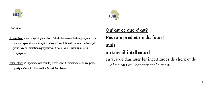 Remarque: Cette note d'information sur FOSA a été présentée à Andsibé sous forme powerpoint. Cette présentation powerpoint est disponible sur demande auprès de l'équipe FOSA au bureau régional de Accra ou au Département des Forêts à Rome.