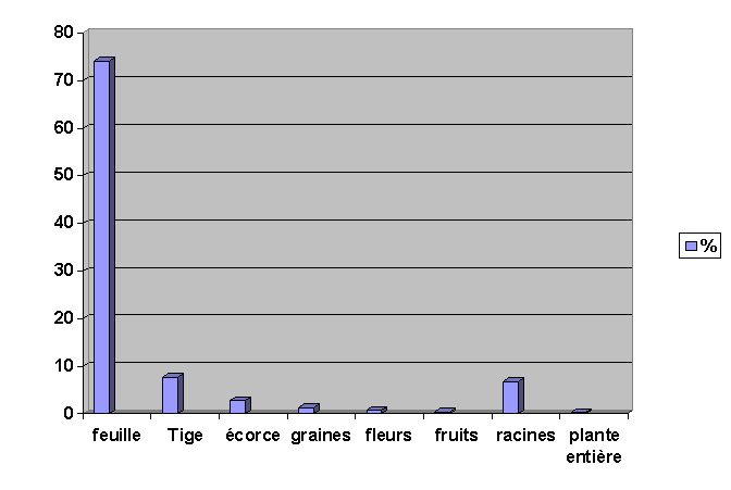 Le graphique n° 3 montre que plus de 80 % des parties servant à la médecine traditionnelle sont non ligneuses.
