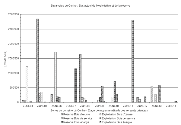 Figure 8 : Réserve de bois et exploitation de la ressource eucalyptus dans le domaine du Centre (Moyen Ouest)