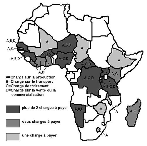 La production des produits forestiers se déroule le plus souvent en plusieurs étapes, le processus commençant avec la récolte des matières premières dans la forêt et s’achevant avec la vente du produit fini. Des recettes peuvent être collectées à un ou plusieurs de ces stades. C’est là le deuxième facteur qui explique les variations considérables entre les régimes fiscaux forestiers en vigueur dans les différents pays africains.