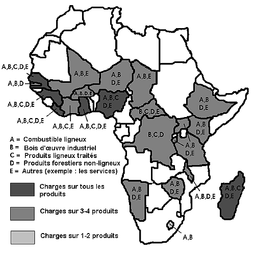 Bois de feu. La plupart des pays perçoivent des taxes sur la production et/ou le transport du bois de feu (bois de feu et charbon de bois). Ces taxes sont ordinairement basées sur le volume ou le poids du bois de feu (les redevances de transport sont parfois basées sur le type de moyen de transport). Dans de rares pays, certaines superficies de forêt sont réservées à la production de bois de feu et les gouvernements font payer des taxes basées sur la surface.