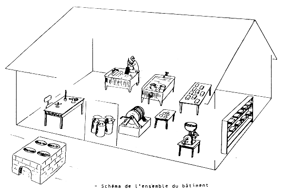 La taille du bâtiment sera évidemment fonction de la quantité de lait réceptionnée pendant la période de haute production. Les quantités de lait pouvant être transformées dans un atelier artisanal vont de 100 à 500 litres de lait par jour. Pour une telle quantité moyenne de lait la surface du bâtiment doit être d'environ cinquante mètres carrés.