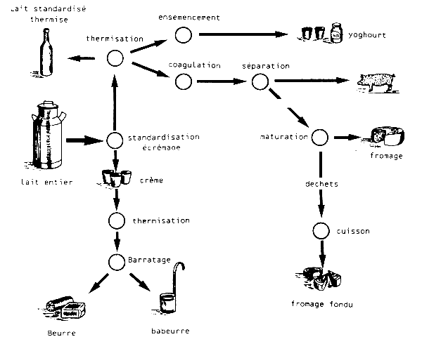 Les produits laitiers peuvent être réalisés selon le schéma suivant: