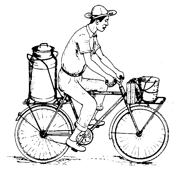 la collecte, si elle est nécessaire, nécessite l'emploi d'une bicyclette,d'un bidon à lait de 50 litres,d'une éprouvette, d'un lactodensimetre,et d'un bidon doseur.