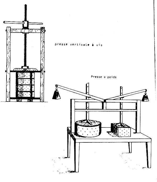 Pressage: plusieurs types de presse à fromage peuvent être confectionnés.