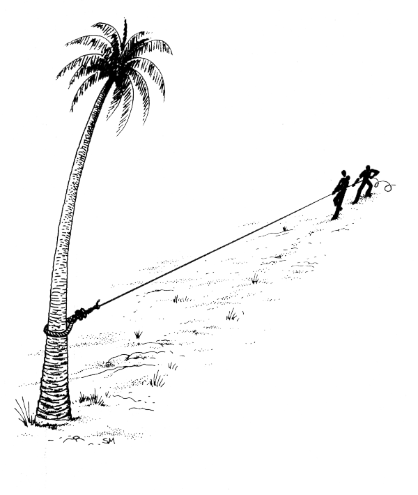 When you are choosing floats and sinkers for your net, remember: the sinking-power of the sinkers must be from three to five times greater than the floating-power of the floats. This means that for each float on the floatline there must be a weight in sinkers that is from three to five times more than the float can lift (fig. 13).