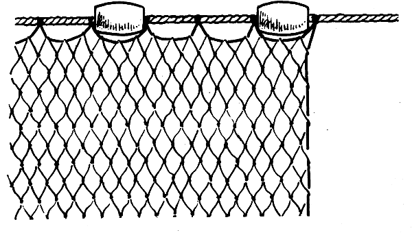 (Fig. 62). You can also use floats made of wood. You will need 25 floats for the net.