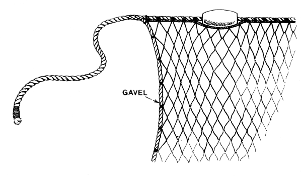 You do not need to make gavels for this net, but when you attach the anchor-rope to the net you should tie it to both the floatline and the leadline.