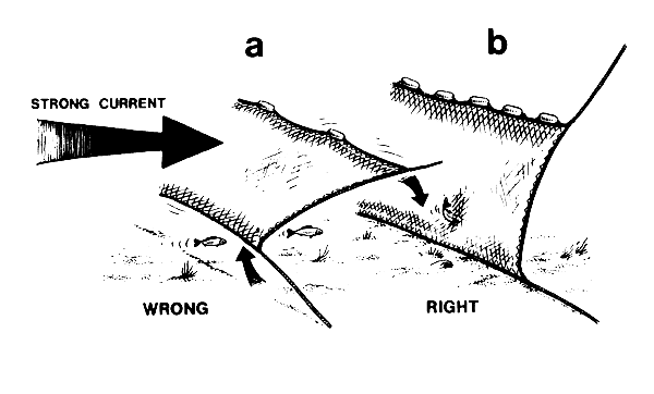 Every net must be made in the right way for the place where you are fishing. If the bottom is very rocky the net must be made to protect it from getting torn on the rocks. If the bottom is very soft the net must be made so that it will not get stuck in the mud.