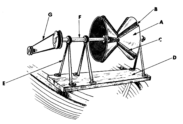 First take the rope you are going to use, soak it in water and then stretch it to get all the snarls and tangles out of it. This is easy to do with a swivel (Fig. 17). Measure out the pieces you need for the floatline and the leadline. They must each be 52 metres long. Make a mark 1 metre from each end of both pieces.