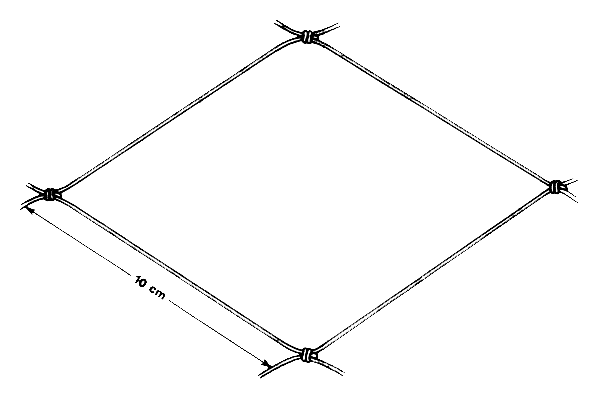 The twine thickness should be 0.7 millimetres. The width of ten wraps should be 7 millimetres. Use the picture as a guide (Fig. 8). If you want to make the netting yourself you will need about 1 800 metres of this twine.