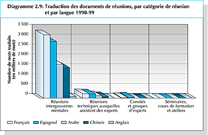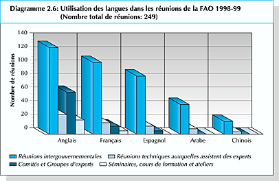 Dans chacune de ces catégories, les réunions peuvent être convoquées soit en tant que sessions d'organes statutaires (si elles ont été établies comme telles), soit en fonction des besoins. Le diagramme 2.6 indique les langues utilisées par catégorie de réunion.