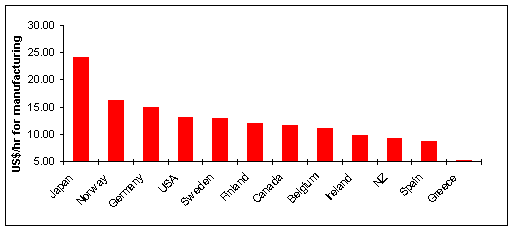 – A more efficient labour market; labour costs dropped 30 percent, 1992-98, and are below 1984 levels, while labour costs in other countries are increasing.