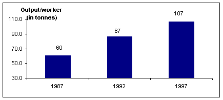 Internal competitiveness, labour productivity, and contribution to regional trade are all up, but perhaps the greatest benefits come from the removal of market distortions so that domestic producers have been able to take a rational approach to capacity growth in a mature industry. This has meant that the sector has not taken part in the international rush to build new capacity. This factor, plus the enhanced distribution and marketing linkages of the industry's internationalized companies, has minimized the impact of the Asian crisis.