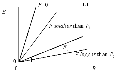 Notice that in Figure 4.5-D, the relation B/R against F was shown. The two curves 4.5-D and that of Figure 4.10 are different representations of the same situation. While in Figure 4.5-D, a value of F corresponded to a value of B/R given by the curve, in Figure 4.10 the value of F will correspond to a slope B/R of a given straight line.