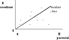 7. If the median line does not pass through a marked point in the scatter plot (which happens when there is an even number of points) then one can use any straight line passing between the two central points, for instance, the mid-line. In any case, Fmed is always an approximate value.