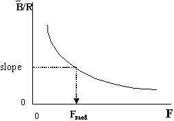 To determine this limit point, first obtain the value of R corresponding to Bloss on the adjusted curve S-R. Then, calculate Bloss/R and find the value of F, in the long-term relation B/R against F.