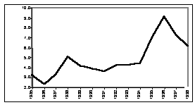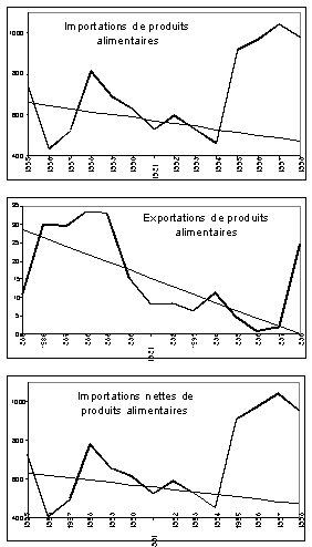 Figure 4: Rapport de la valeur totale des importations de produits alimentaires à la valeur totale des exportations de produits agricoles (1985-98)