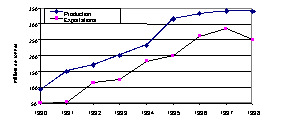 Figure 3: Production et exportation de sucre (1990-1998)