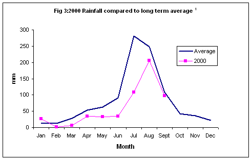 1 2000 rainfall data taken from 6 stations in key agricultural areas in the SW and NE of the country.
