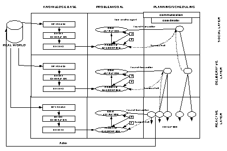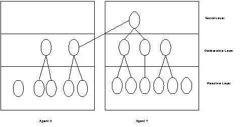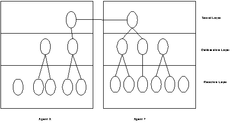 The agent's perceptions (sensors) are translated into reading the database objects, while its actions are translated into performing write operations to these objects. Reading and writing are done within normal set of rules having atomic, consistent, and permanent properties (Ensor and Gabbe 1988). The agent's Knowledge Base (KB) is stored in a database at each agent layer. User Interfaces of the relevant information available in underlying layers are materialized. The belief generator of each layer acts as an interpreter and problem solver for automated reasoning uses its interface to update the agent's beliefs. These beliefs are stored in the knowledge base database of the corresponding layer.