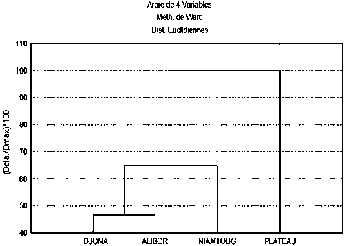 The cluster analysis shows two groups of sites: the forest zone form itself one group and the another three sites forms the second group (fig. 2). That explains difference in species composition of agroforestry systems between forest and sudanian zones.