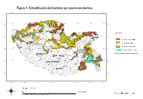 Finalmente, a partir del inventario y distribución de los recolectores, de la distancia a la pista y de la accesibilidad, se estratificó la zona en unidades homogéneas de presión recolectora (figura 4).