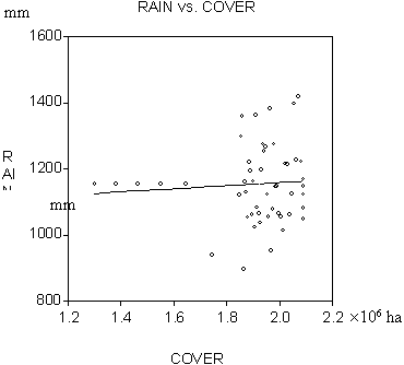 Forest cover and rainfall, affect each other simultaneous and are also affected by the prevailing temperature. We have estimated the relationship between forest cover and rainfall by analyzing them in the framework of a VAR Model (Vector Auto Regression Model) in which we treat cover and rainfall as endogenous variables.