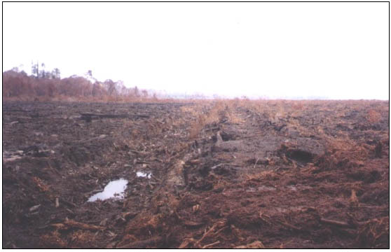Photo 1. A glance at the burnt peatland in PKPS February 2002