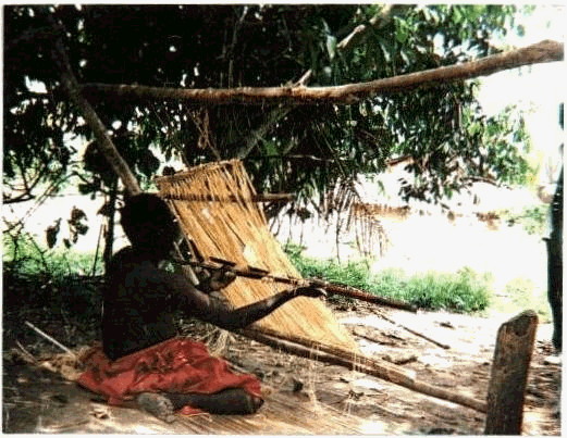 Raphia textilis: Espèce très utilisée par les Kuba. La fibre extraite des palmes du raphia constitue le génie intellectuel des Kuba. C'est cette dernière qui constitue le matériau de base pour fabriquer le tissu.