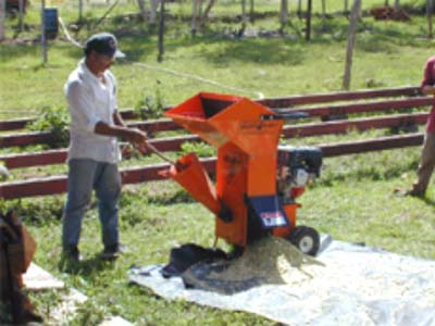 Foto 1: Proceso de picado de biomasa fresca de madero negro (Gliricidia sepium) para la producción de Compost en INTECFOR, Santa Cruz, Estelí.