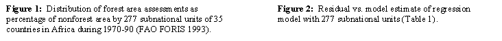 Table 1: Logistic regression model as estimated from FORIS database (FAO 1993) forest area (% of nonforest area) as dependent variable by 277 subnational units of 35 countries in tropical Africa (all variables in natural logarithms; OLS estimation).