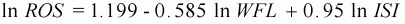 These values are for the fuels in newly cutover areas. In this regard, it can be assumed that the range of ROS will vary from a maximum to a minimum determined by fuel characteristics along with the ISI. ROS values were determined based on this assumption. The analysis yielded the following equation which predicted the ROS values based on the WFL and ISI.