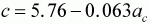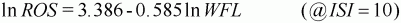 The above analysis does not, however, provide the necessary coefficients for use in the ROS equations, but provide a means of calculating them. Since the original data used for the analyses did not allow for determining the maximum ROS due to insufficient range, an index approach was adopted to solve the problem. The concept behind the index approach is to predict ROS values at a specific ISI value (say 10). Then, relating the calculated values to the maximum and minimum ROS values (i.e., 40 to 70), the equation coefficients can be derived. So, in deriving the a and c coefficients, the relationship (Equation 2) was recalculated using the value of 10 for the ISI. This predicted the index ROS. The resultant relationship was of the form: