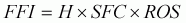 The final step is to calculate the total frontal fire intensity (FFI) which requires the estimate of SFC, ROS and heat of combustion. It is calculated as: