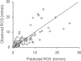 Resultant coefficients were used in the ROS equations for each fire. A regression of observed. and predicted ROS produced an R2 value of 0.60 (P<0.05).