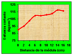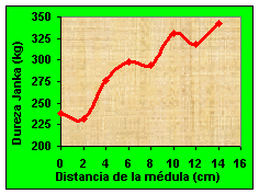 Esta información permitió determinar que la madera de menor calidad se encuentra en un diámetro de 12 cm, lo que equivale a decir a 6 cm alrededor de la médula. La anterior información está permitiendo dejar la parte interior del árbol para usos en que la resistencia estructural no sea un requisito, como por ejemplo las tarimas. En las partes externas es donde se encuentra la madera con mayor resistencia estructural, libre de defectos y se está utilizando para obtener madera de uso estructural y para la fabricación de muebles. Por ejemplo, en la mayoría de las ocasiones, en los pisos de madera se busca que la dureza presente resistencia superior a 300 kg/cm 2 , valor alcanzado en la melina después de 6 cm alrededor de la médula.