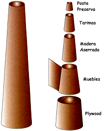 Figura 4. Esquema de utilización de los árboles de melina provenientes de plantaciones forestales en Costa Rica