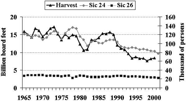 Figure 1 - Harvest and employment in the Pacific Northwest